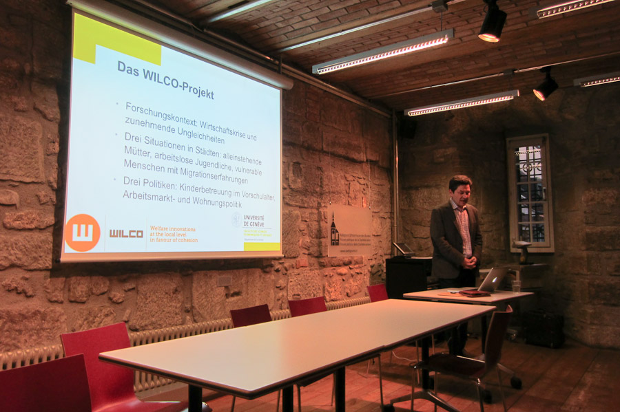 The Swiss WILCO team invited local representatives of Bern administration, political institutions and civil society for a return of results. In the beautiful medieval tower « Käfigturm » located in the old city of Bern which is hosting the Political Forum of the Confederation, we presented our results on orientations and innovations of the Bern municipial welfare system. Since not all of our guests had participated in our interviews or focus group, we first presented the outline of the WILCO project. Then Sandro Cattacin quickly summarized the Swiss context regarding social policy and the role of the local level. He continued with the results of our research on the other Swiss case-study: Geneva. While only 150 kilometers away, Geneva and Bern have very distinct contexts. A first reason is federalism: cantons have numerous prerogatives regarding social policy. A second reason is the linguistic division. Bern represents the east and north German-speaking Switzerland while Geneva is on the border with France, in the French-speaking south-west of Switzerland. We presented more extensively our findings on Bern. In our perspective, Bern can be described as a «regime of innovation». A distinct consensus can be observed among the two leading coalitions: the social democratic one and the liberal one. Both have a strong focus on growth, and agree on a rather supportive welfare system. This consensus allows the Bern administration to implement innovations oriented towards what authors called an «activating social investment agenda». Our studies of values and orientations as well as the case studies of three selected social innovation show a clear trend towards a social investment perspective and towards «activation» as a guiding principle.