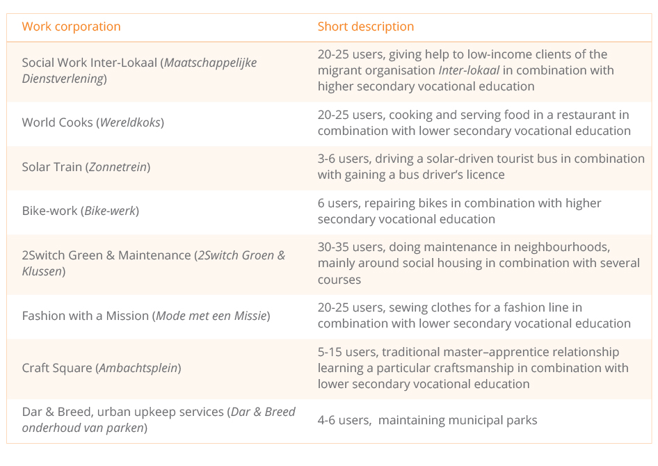 Table 1. Examples of work corporations in Nijmegen